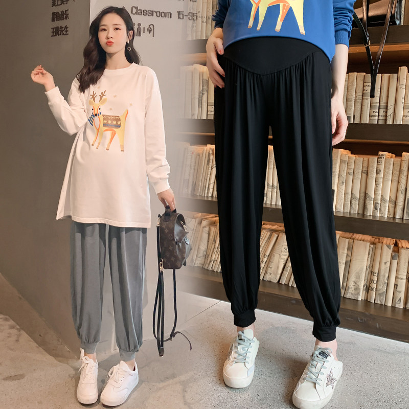 Pregnant women base summer thin section super fat plus size 200-300 catties fat MM loose wide-legged thin nine-point pants