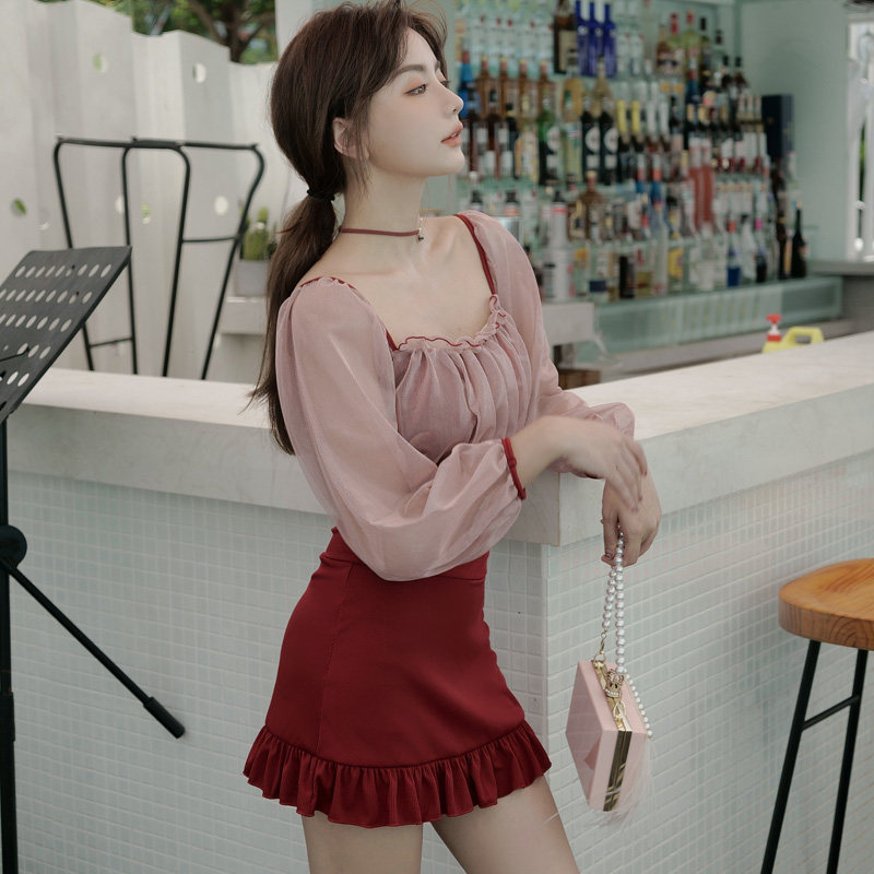 Two-piece long-sleeved swimsuit 2020 New exploits women's Les Bubbles Spa Cover slim Sexy Korea Ins students