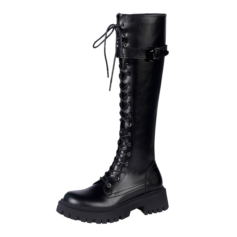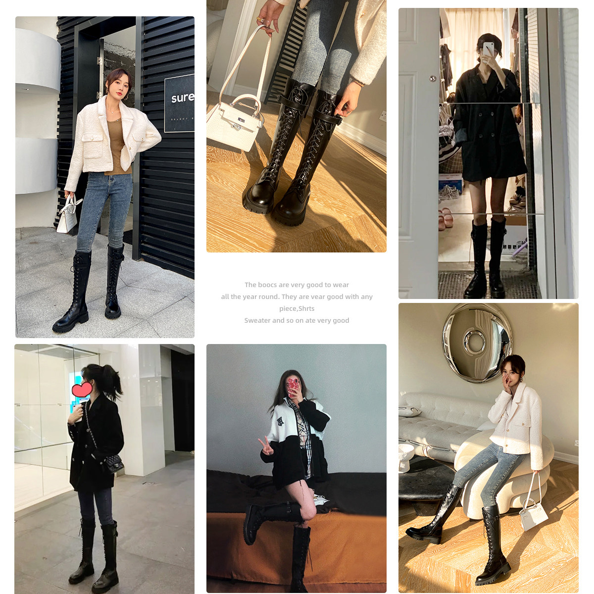FXSO Square Lane Rider Boots Women's Winter 2021 New Long Thick Sole But Knee Boots Female Martin Boots Plus Fleece