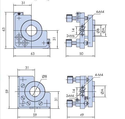 Reflective beamsplitter frame opening manual 2D lens clamp optical 2D adjustable lens fixed adjustment frame