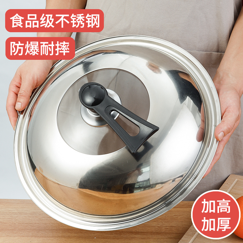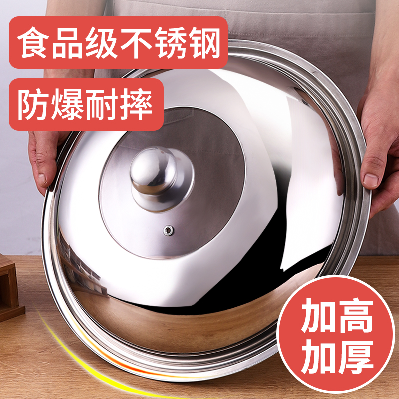 Pot cover Household cap Glass tempered high temperature stainless steel 32cm wok universal transparent cooking lid round