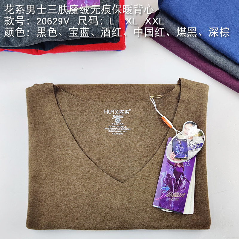 Floral underwear men's three-skin magic velvet bottoming top tight-fitting German velvet modal plus velvet heating no trace warm vest