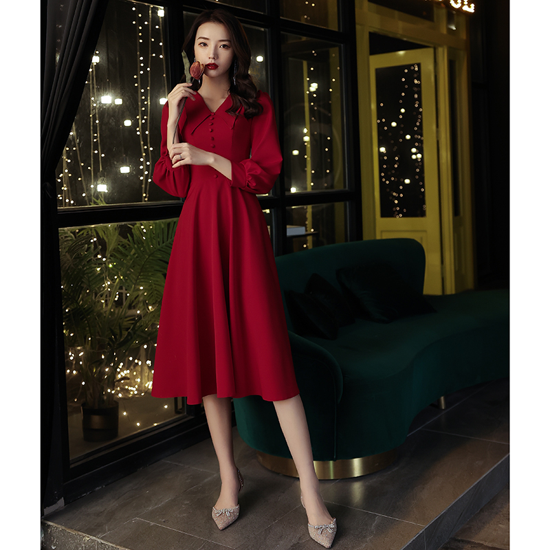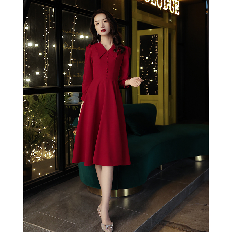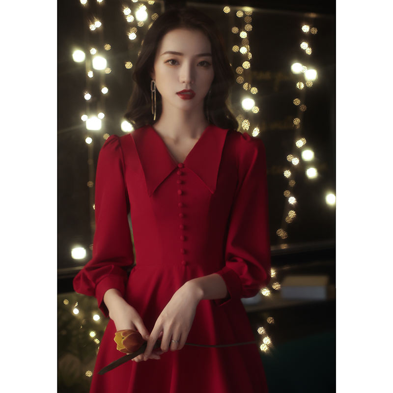Toast clothing brides can usually wear wine red back door dress engagement small dress skirt female long-sleeved daily