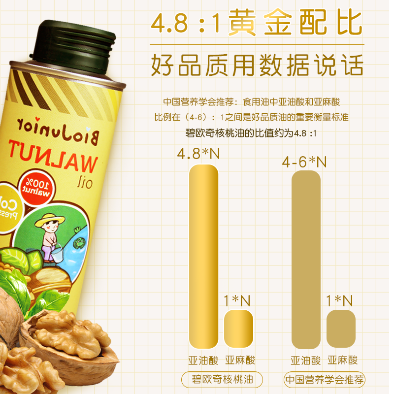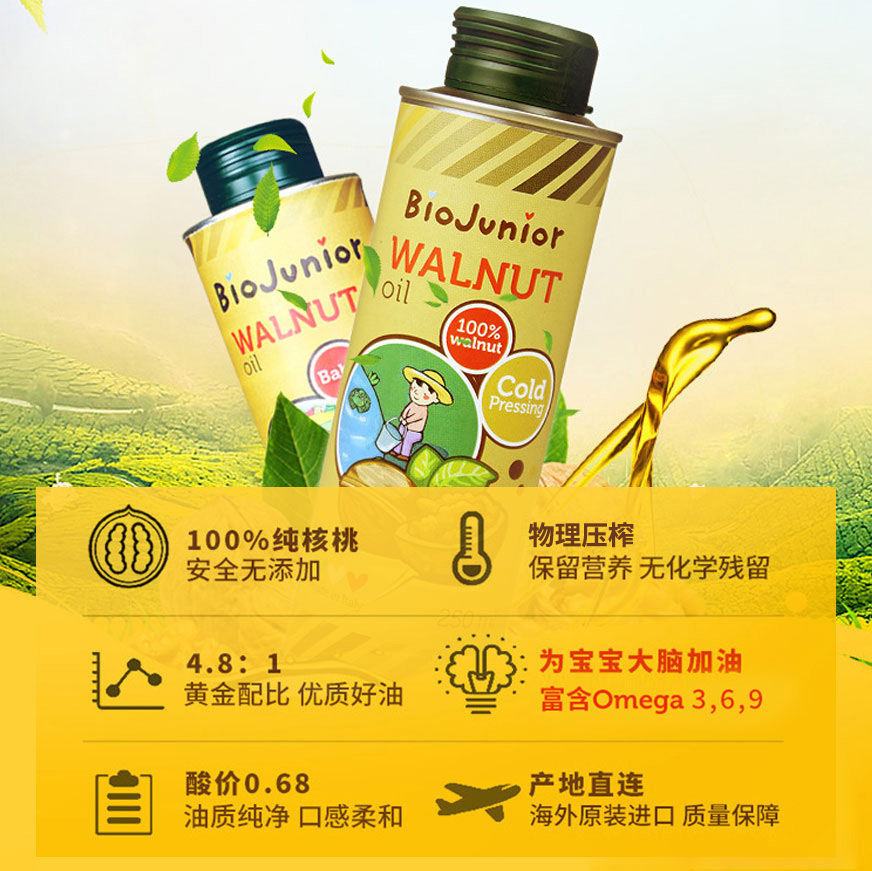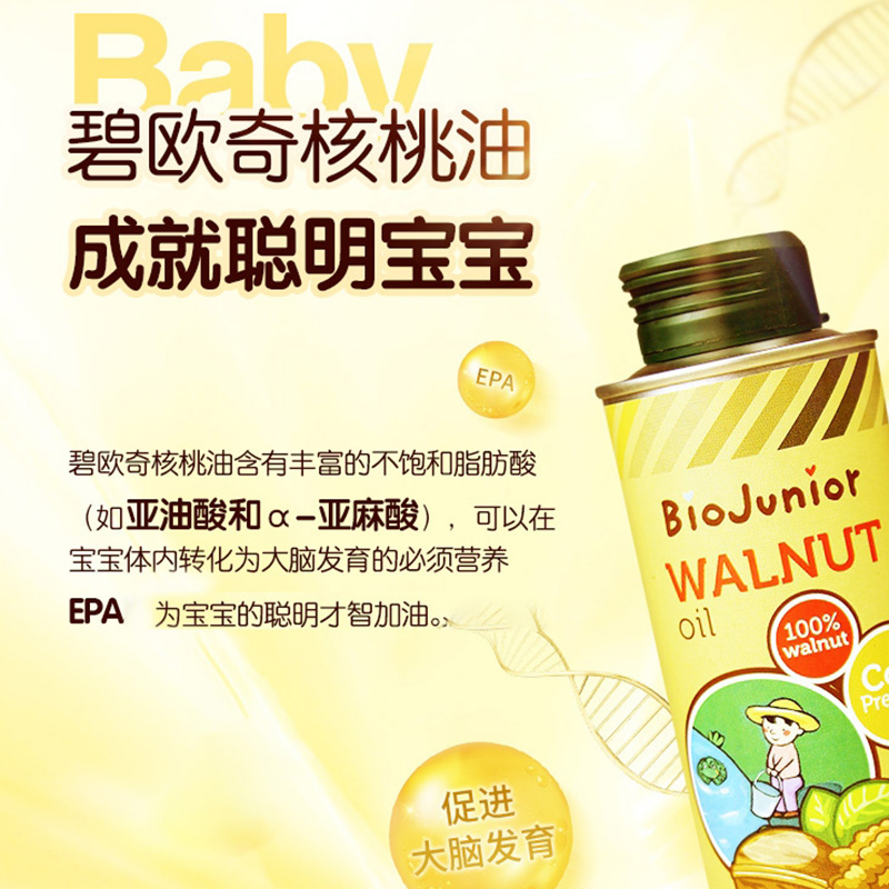 Biooqi walnut non-staple food oil infant 250ml baby children Italy imported supplement DHA physical spot