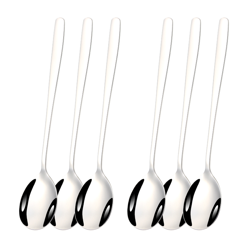 Thickened 6 sets Korean spoon household long handle spoon spoon Korean stainless steel spoon portable chopsticks spoon fork