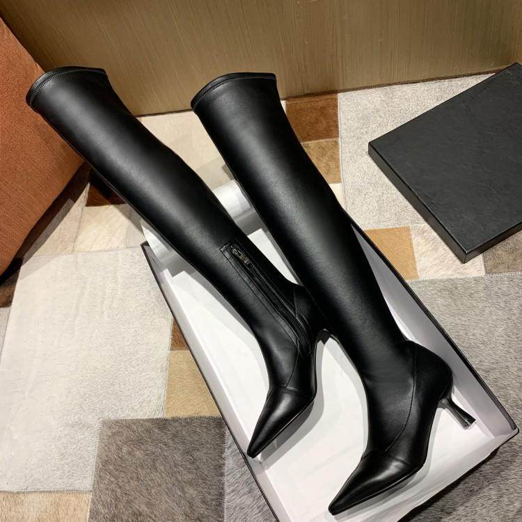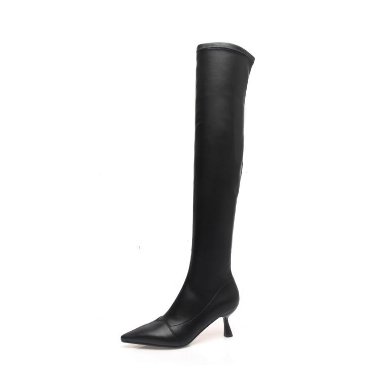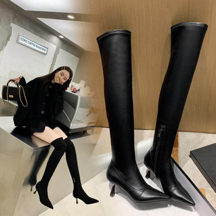Leather over the knee boots women's elastic stovepipe boots pointed toe thin boots 2020 autumn and winter boots high-heeled knight boots trendy