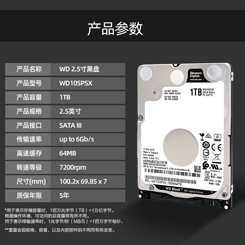 WD Western Digital notebook mechanical hard disk 500g 1tb 2 5 inch black disk laptop SATA 7mm