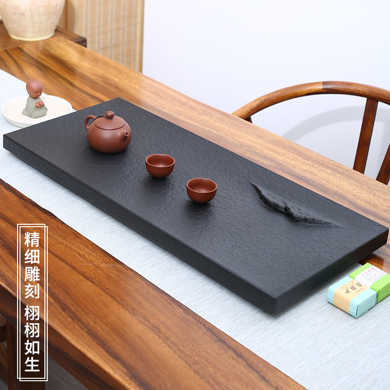 Wujin stone tea tray household simple small tea table Black gold natural stone whole custom embedded office tea sea