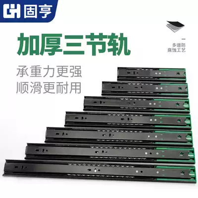 Guheng three-fold drawer slide thick buffer damping three-section track silent rail household hardware integral cabinet slide
