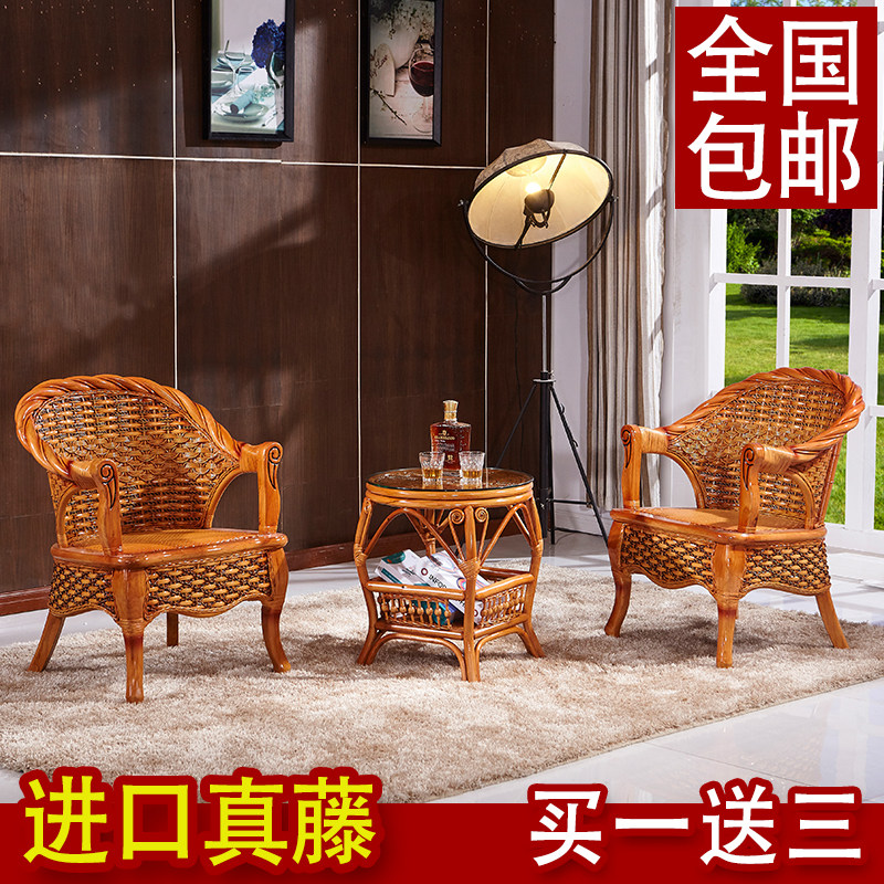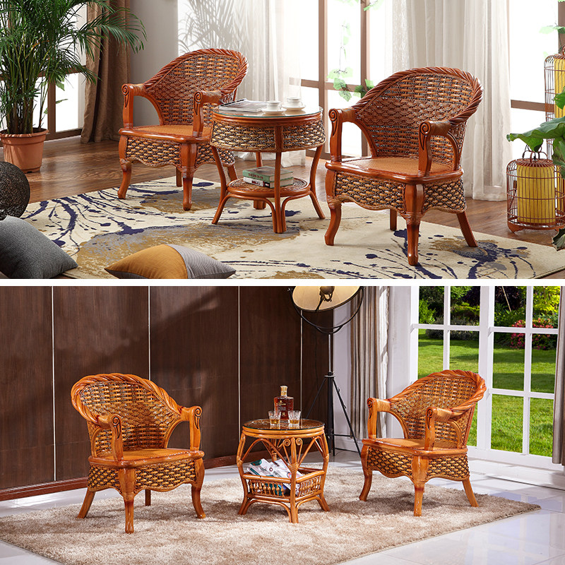 Balcony real rattan chair three-piece set leisure small table and chair coffee table combination home living room single bamboo chair backrest