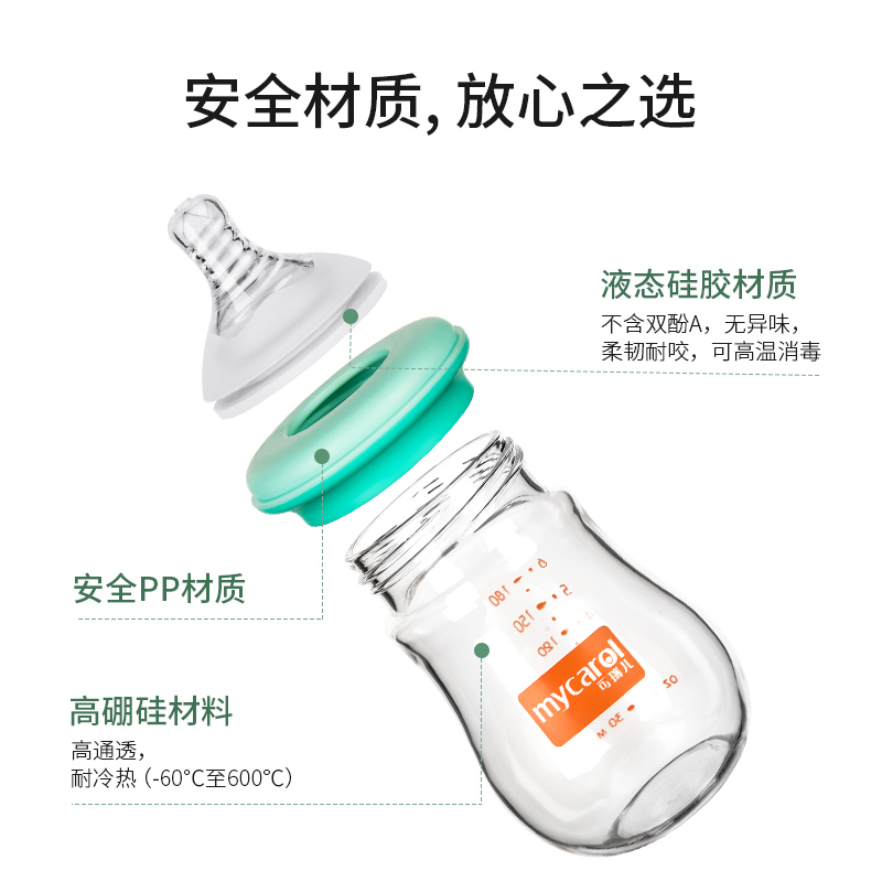 Kerui Er newborn baby bottle 0-6 months anti-flatulence anti-flat collapse wide diameter glass bottle 80ml 180ml