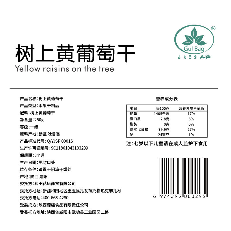 250g of yellow raisins on the tree (sweet and sour) 250g*2 bags of yellow raisins on the tree (tasting)
