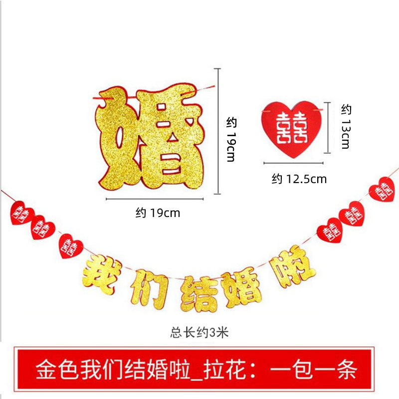 Wedding happy words We are married La Playhouse Wedding Room Guest Bedroom Bedside Background Wall Wedding Creative Arrangement Decoration