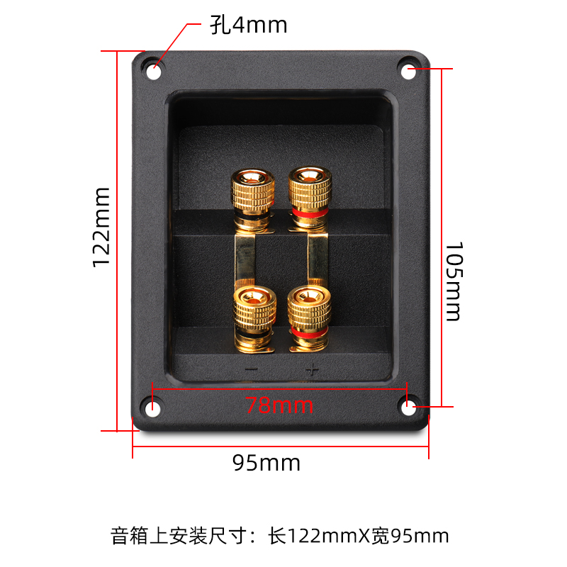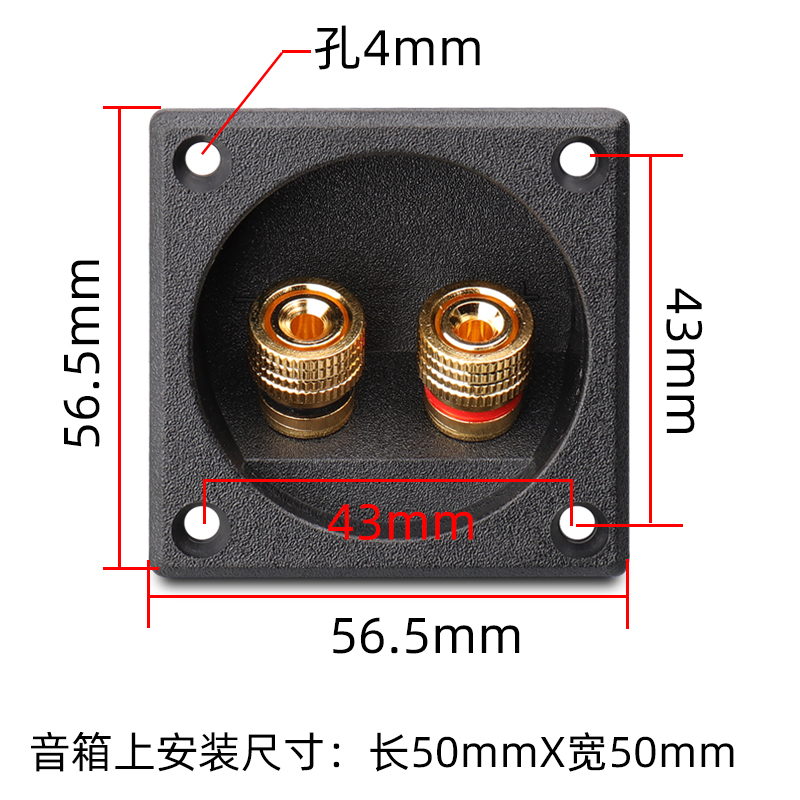 2-position speaker junction box Pure copper gold-plated terminal post opening diameter 50 pronunciation sound terminal block