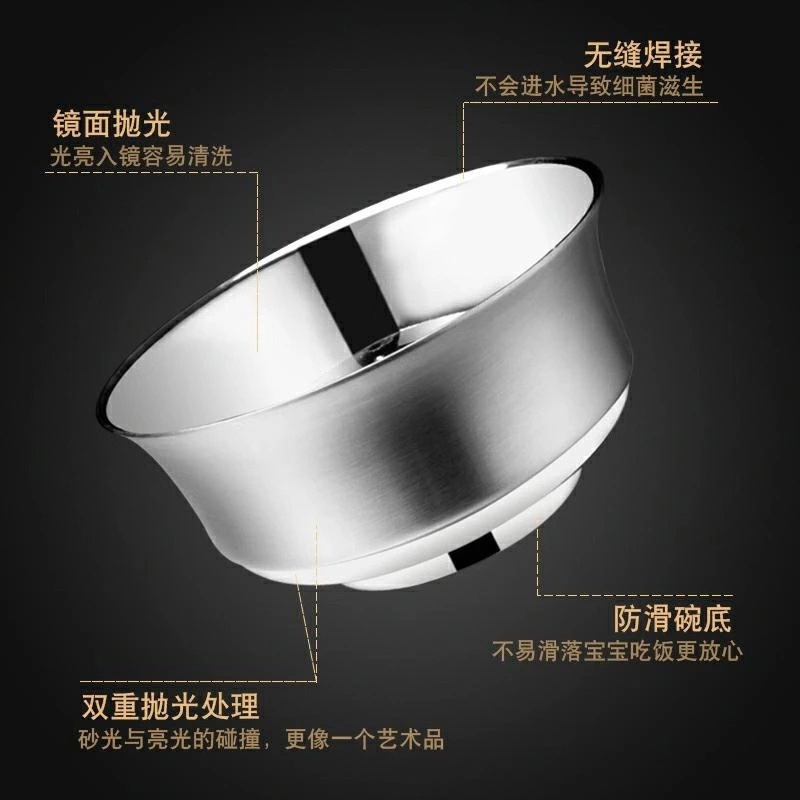 Leyo Home 304 Stainless Steel Happy Double Layer Vacuum Not Bronzed children Home Thickening Big Dinner Bowl-Taobao