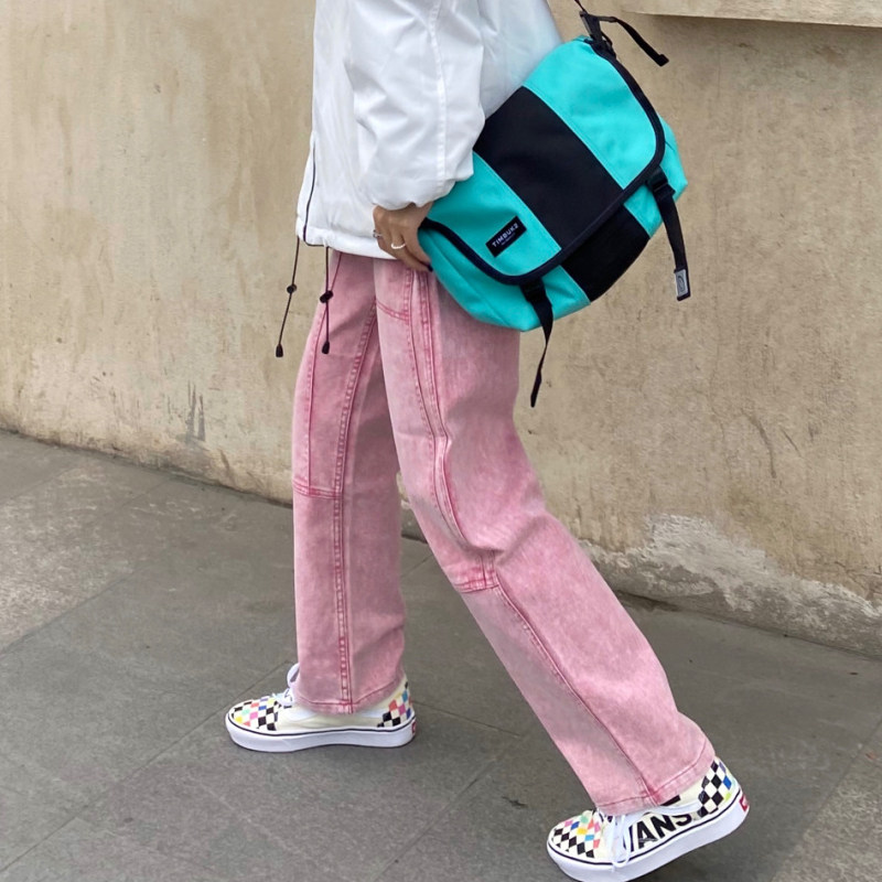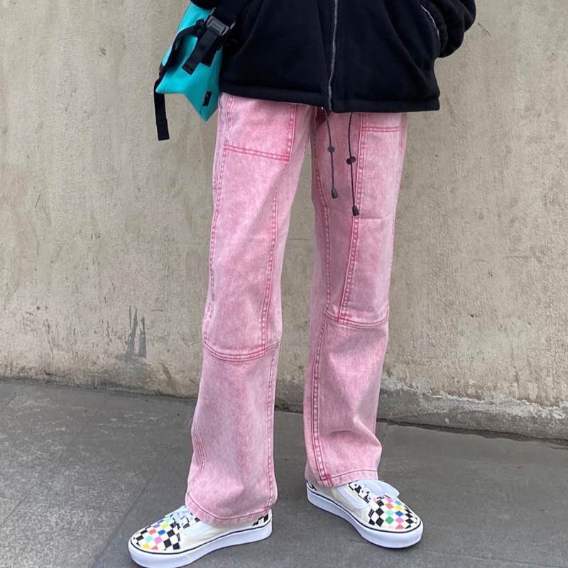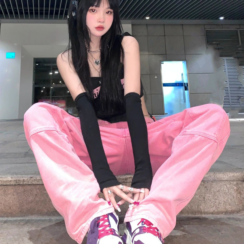 2022 new hot style spring and autumn straight pink high waist jeans women's high street loose pants ins tide wide leg pants