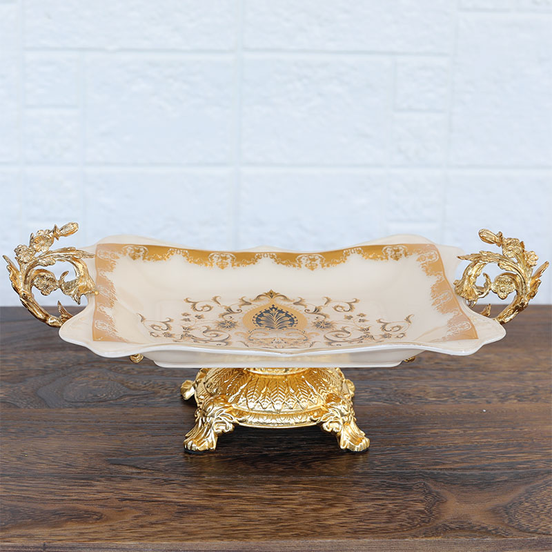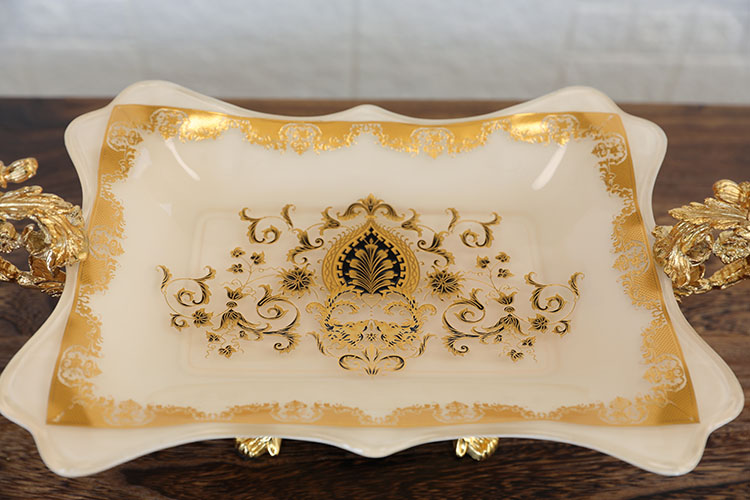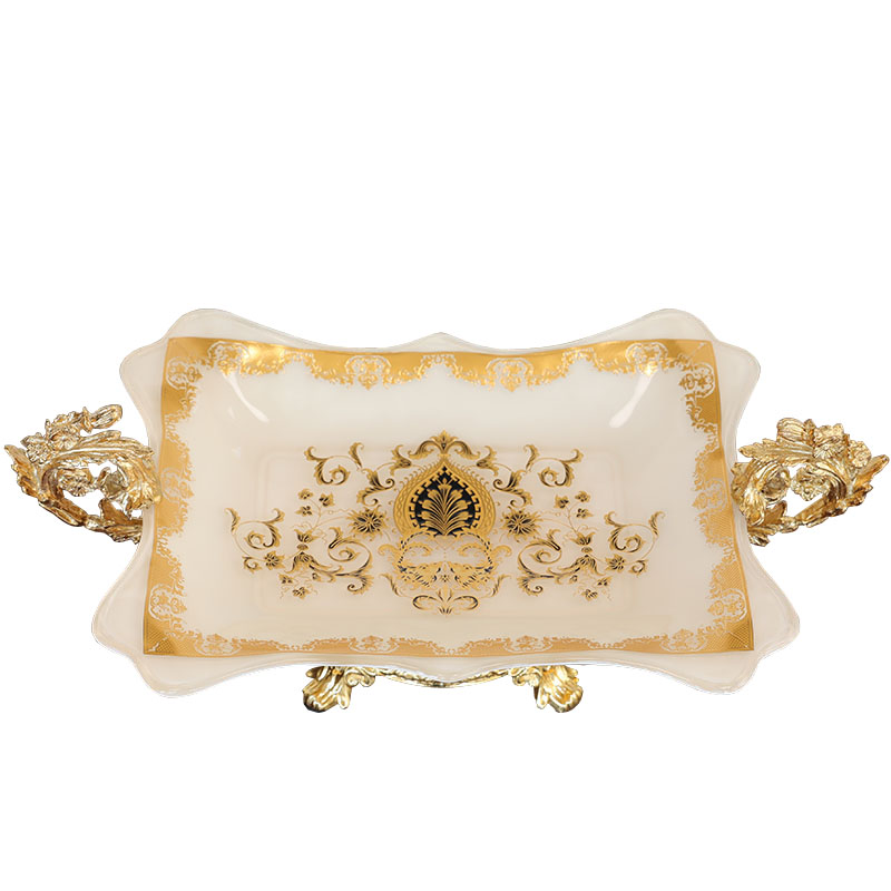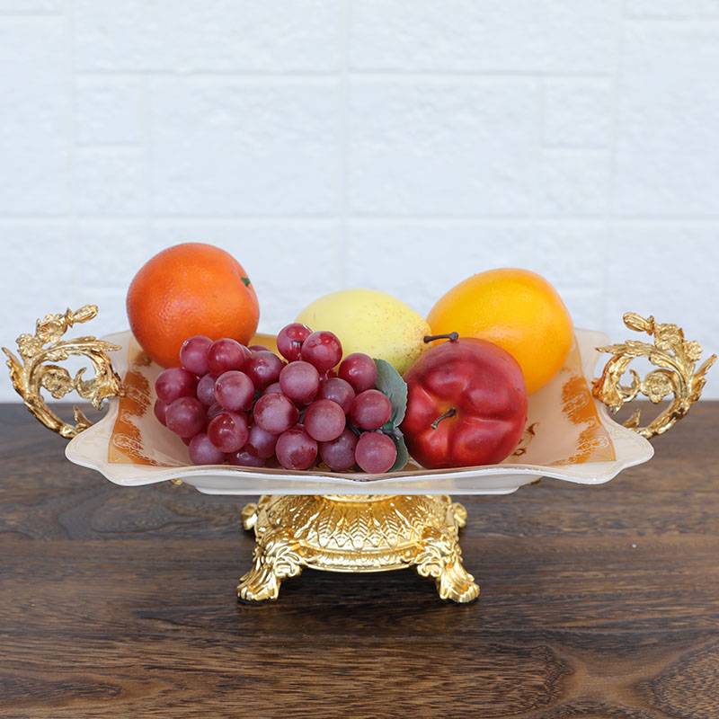 European alloy glass fruit plate American high-foot double ear fruit plate luxury villa sample room tea couple parts