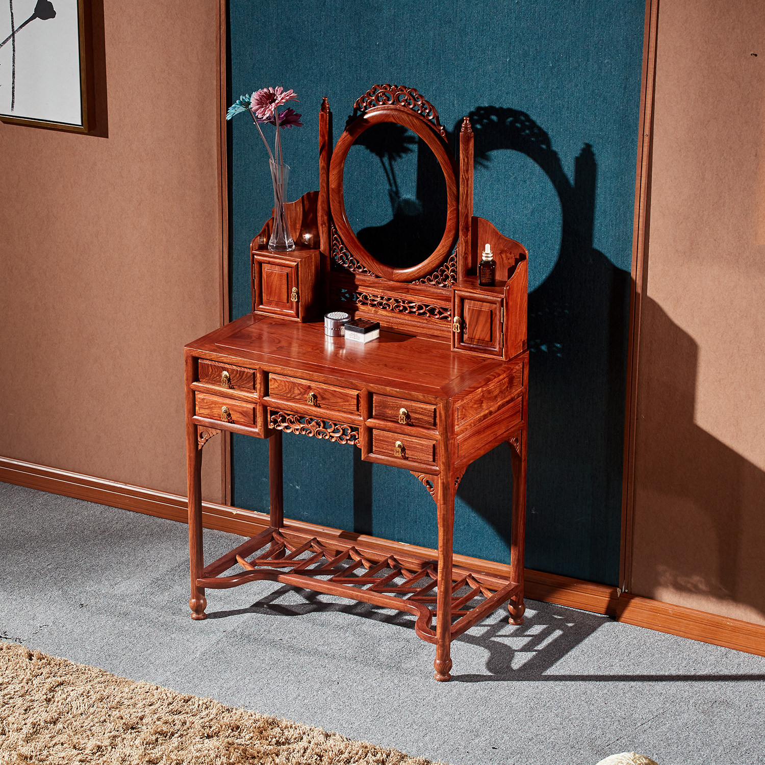 Red Wood Bedroom Makeup Bench Hedgehog Purple Sandalwood Makeup Bench Composition Flowers Pear Wood Minqing Classical Makeup Table Red Wood Furniture