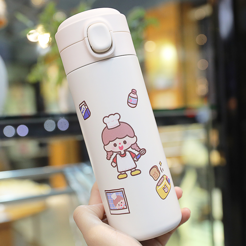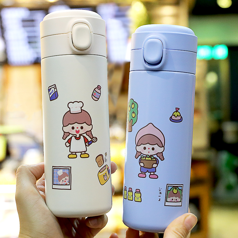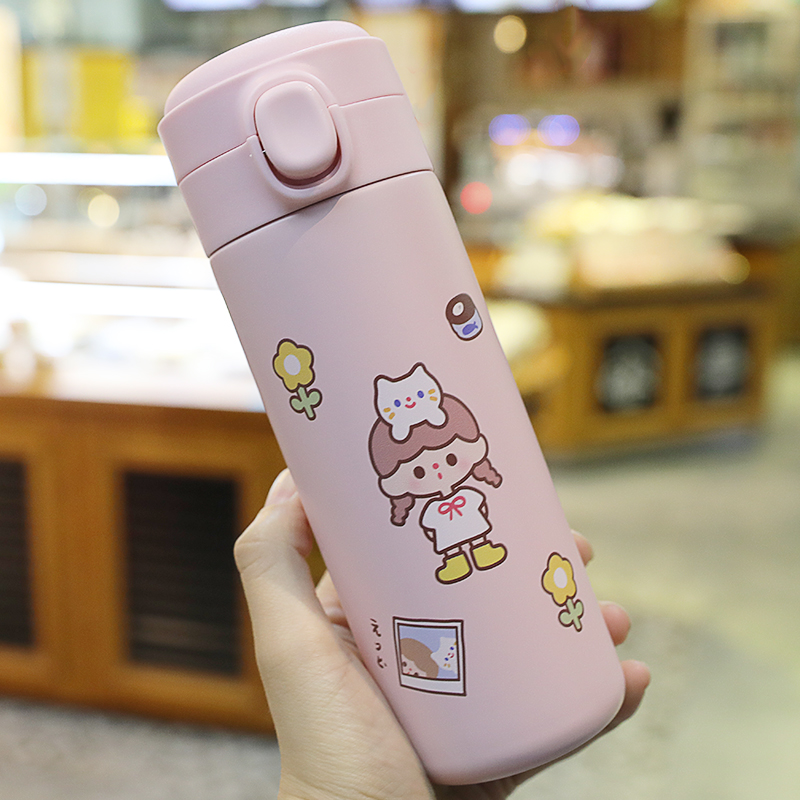 Girls cup high color value student cup girl heart portable Japanese mug bounce cover lock straight drink cup