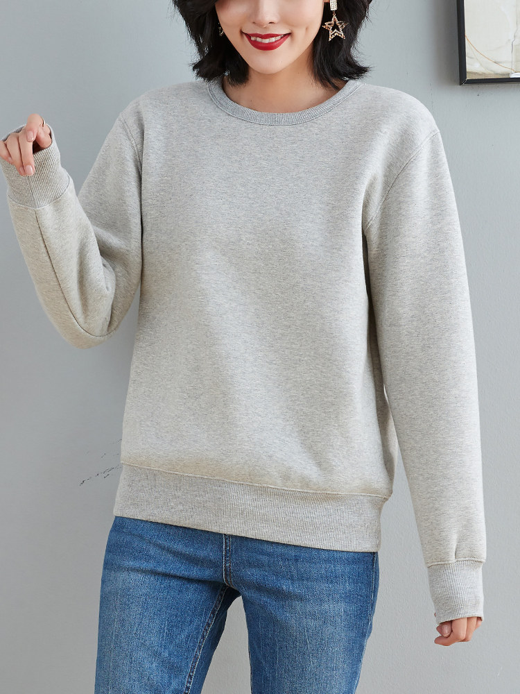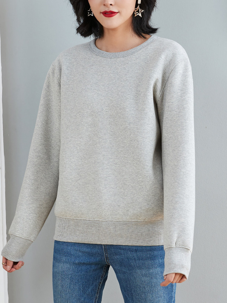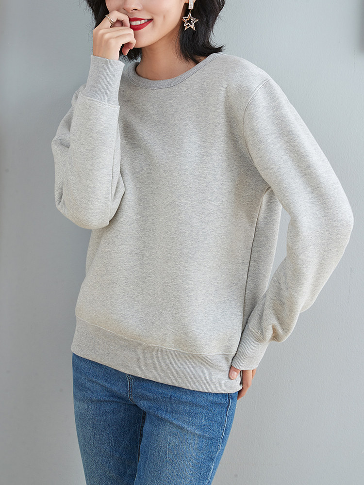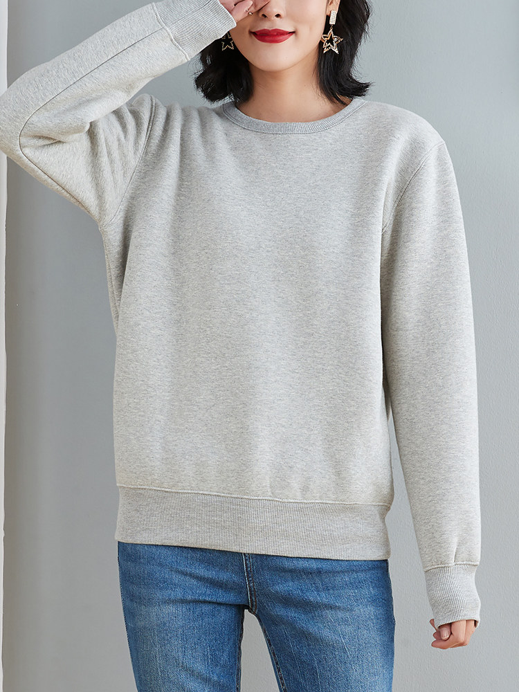 Round neck thick cotton T women's plus velvet winter imitation lamb velvet capless loose top cotton gray thickened pullover jacket
