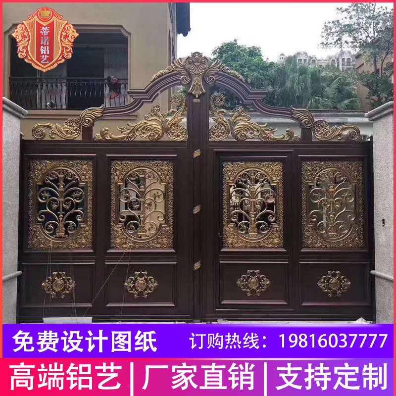 Aluminum gate courtyard villa rural community wall opening iron electric translation push-pull alloy double door