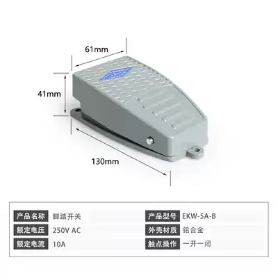 Foot switch EKW-5A-B Self-reset foot pedal with wire 10cm Bending motorcycle switch 220V1 on 1 off