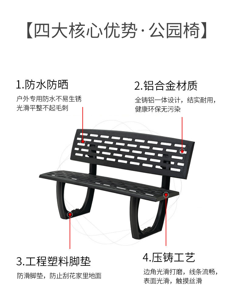 Park chair outdoor bench outdoor back chair leisure courtyard seat iron cast aluminum alloy square hole mesh bench