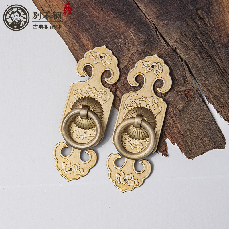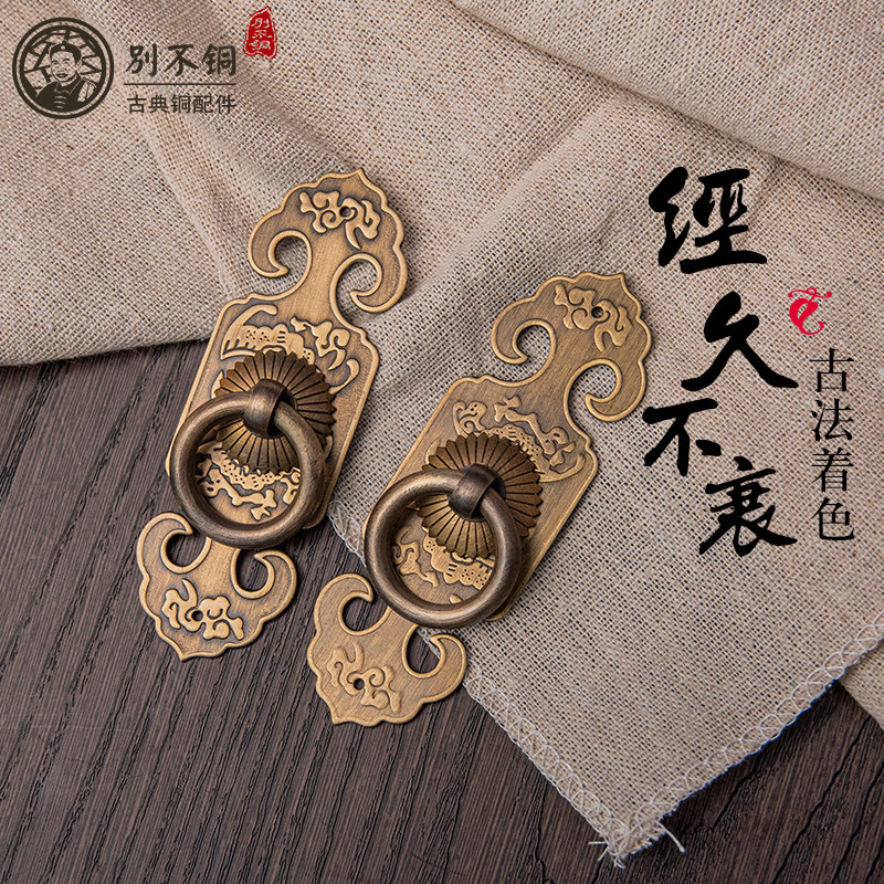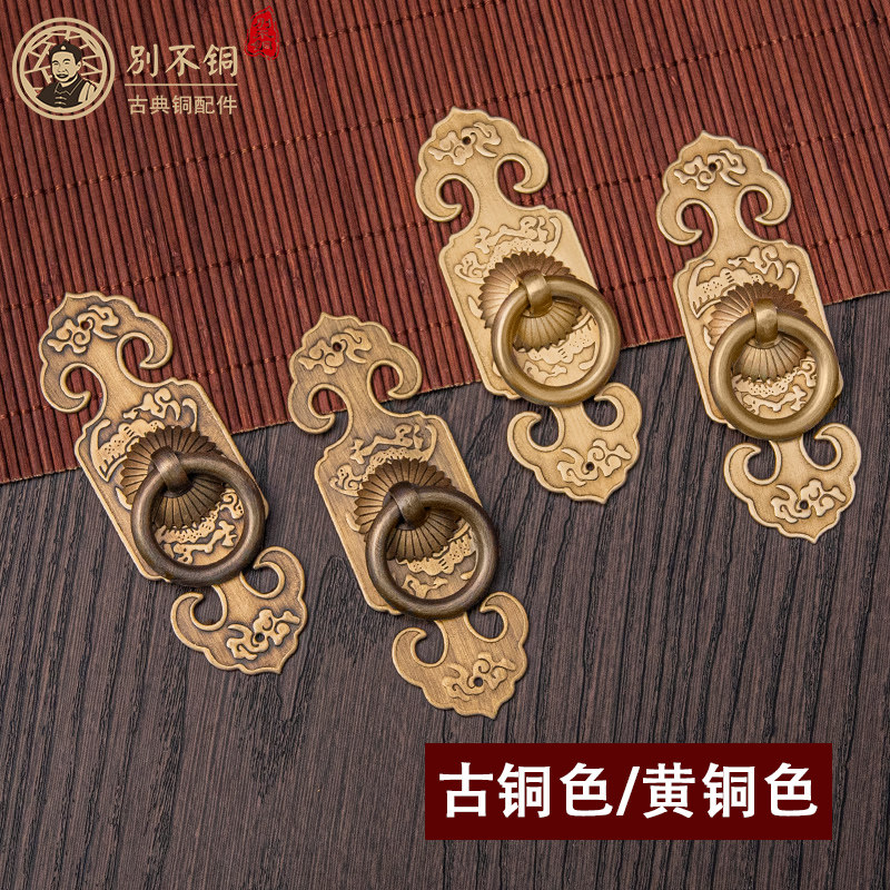New Chinese brass wardrobe drawer handle retro shoe cabinet door furniture pure copper handle ancient bronze color bronze living accessories