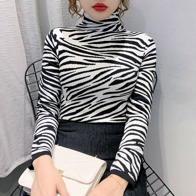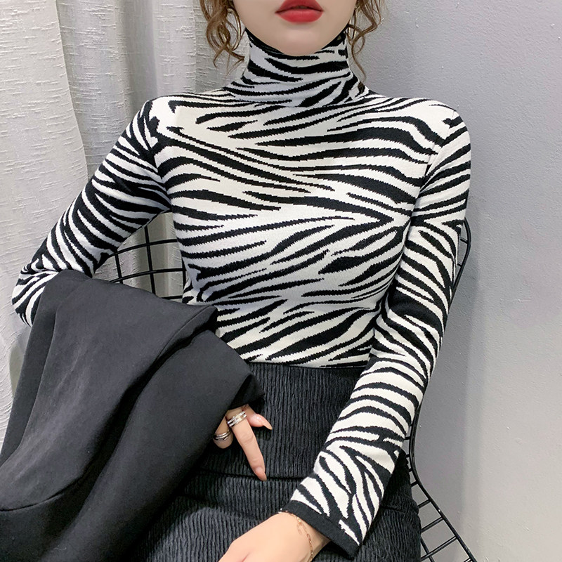 High Collar Spotted Maine Knit Undershirt Woman Spring Autumn 2021 New Foreign Pie hitch a slim sweater long sleeve