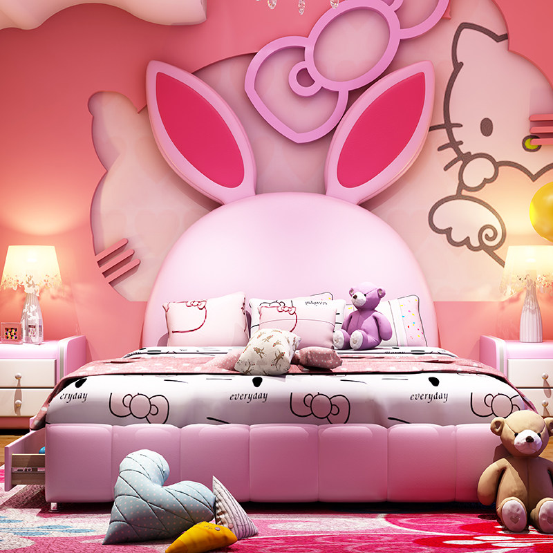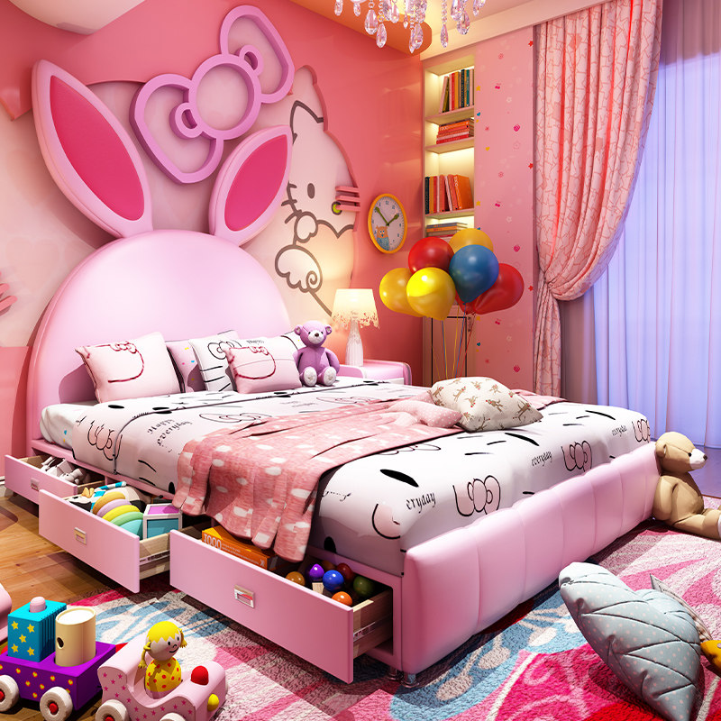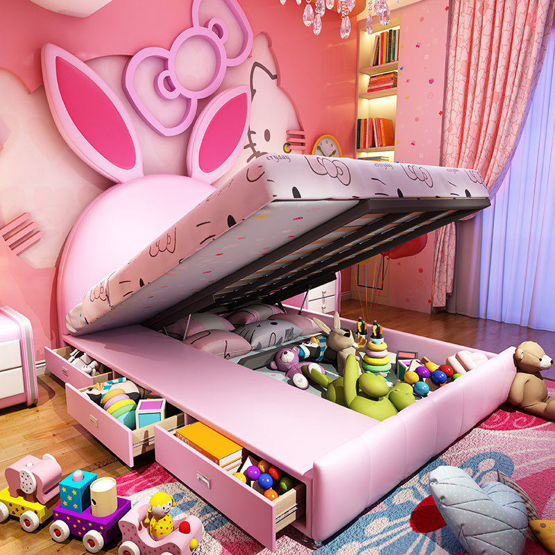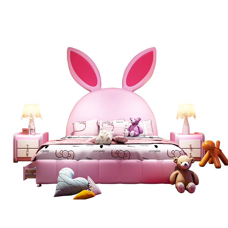 Children's rabbit bed net red ears princess girl bed girl solid wood single 1 5 meters 1 2 cartoon pink 1 35 - Taobao