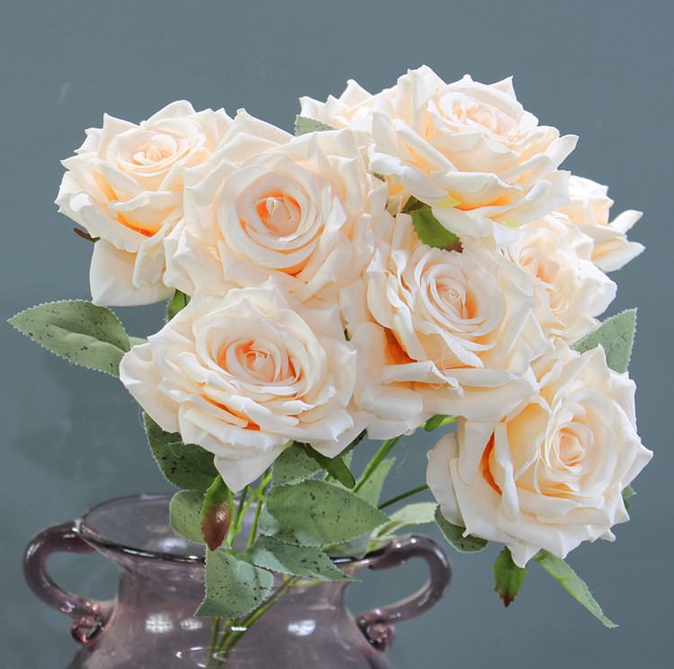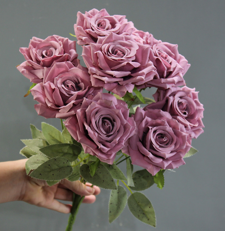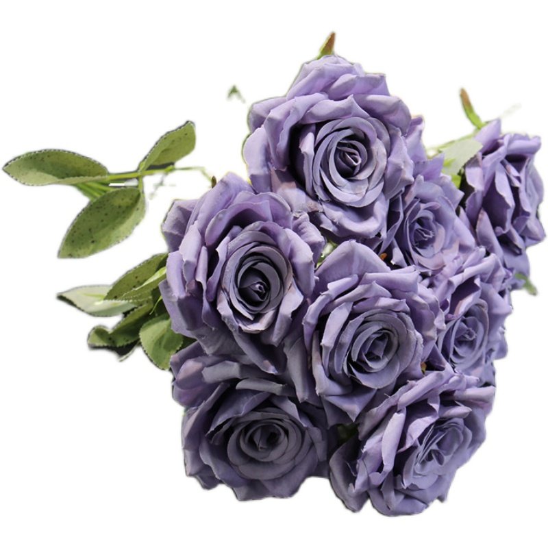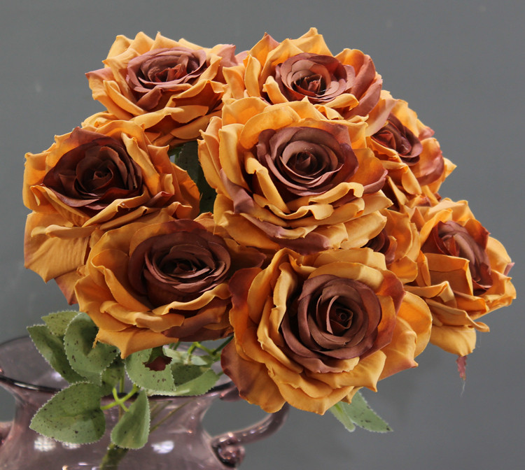 Wedding wedding flower row flower 9 head bouquet autumn color simulation rose fake bouquet silk floral decoration table flower art