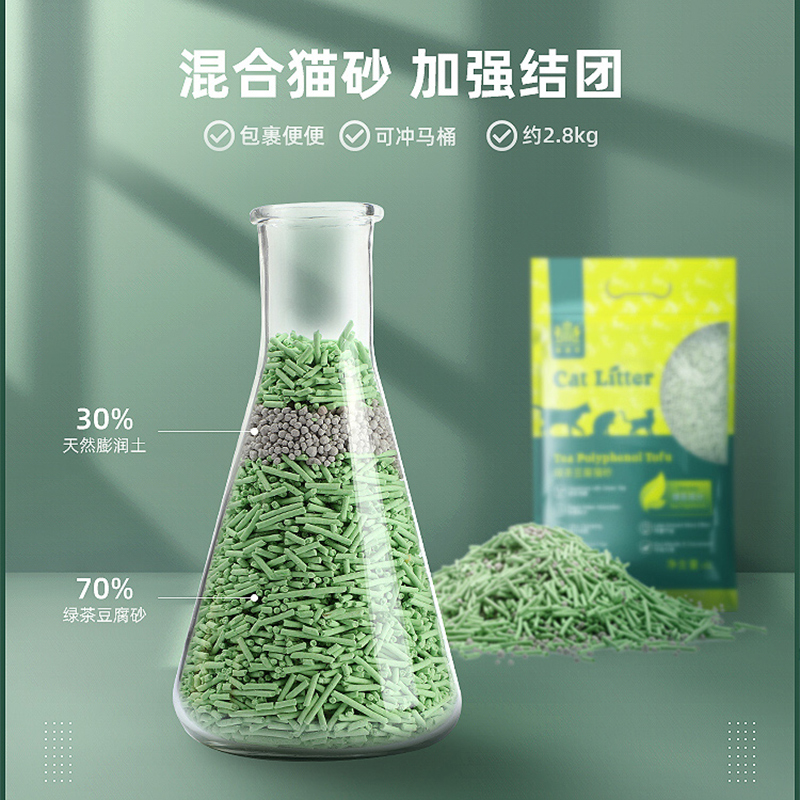 Niwick Cat Litter Upgraded Green Tea Mixed Tofu Sand 2.8kg*4 Bags Pet Supplies Deodorant 10