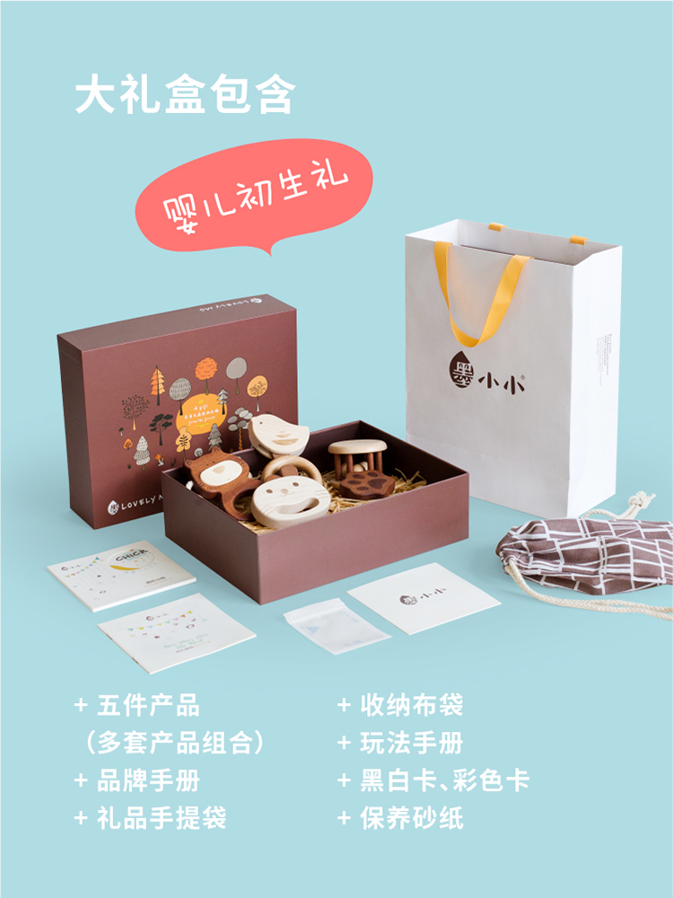Ink small mouse year baby exclusive 100 days full moon gift box newborn rattle combination custom high-end gift