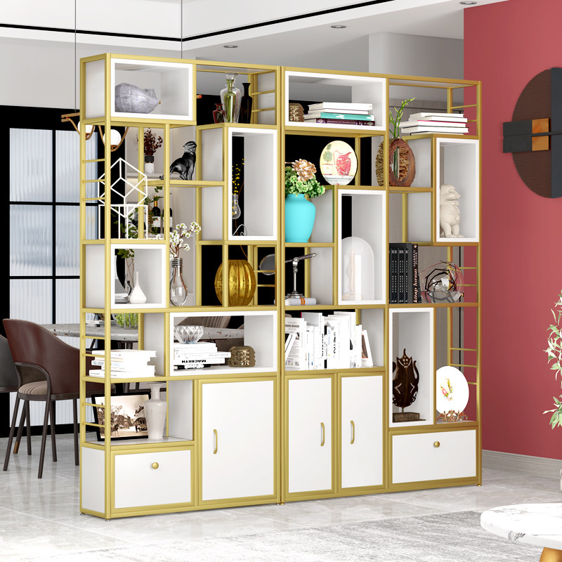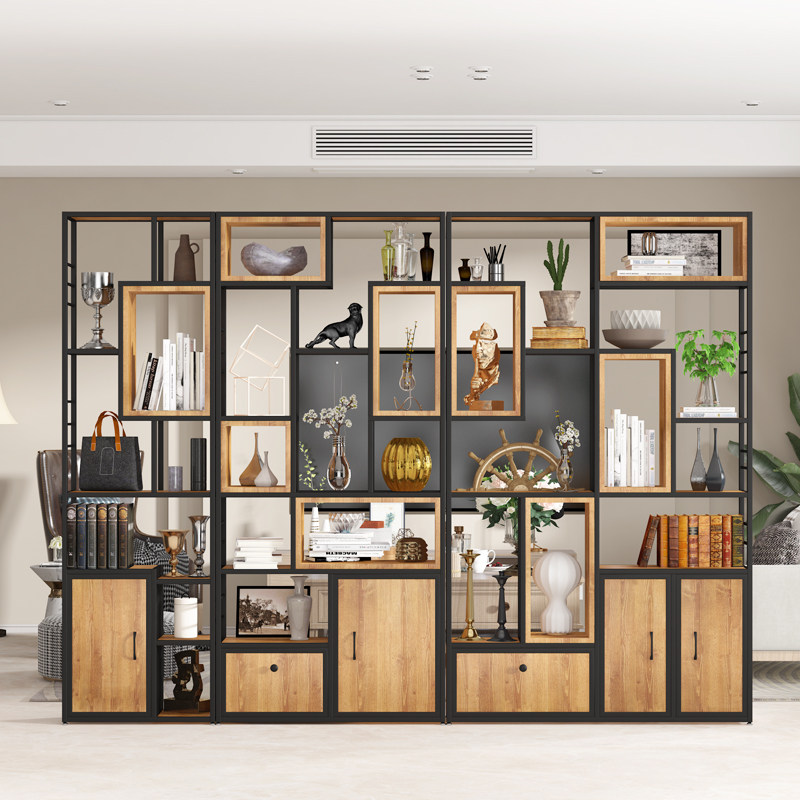 Iron art solid wood shelf floor partition bookshelf flower rack office porch partition storage cabinet display rack bookcase