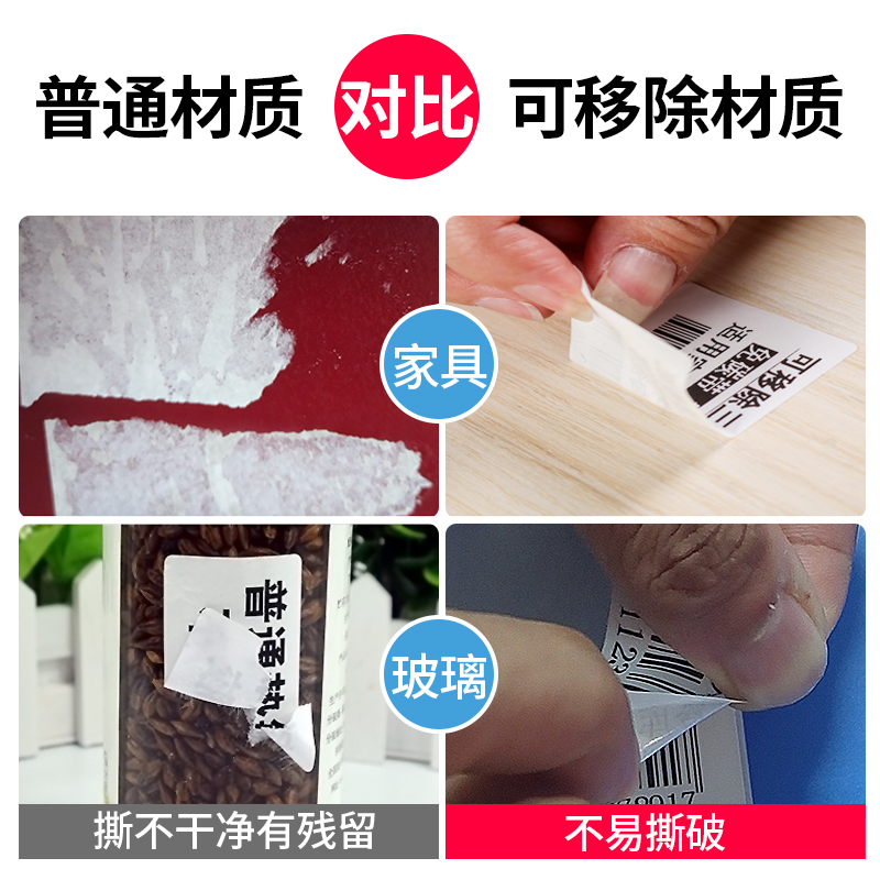 Remove label paper is torn without easy tear and rubber label sticker three anti-thermal adhesive printing paper 60x40*30 20 50 70 80 100 furniture glass synthetic paper defense