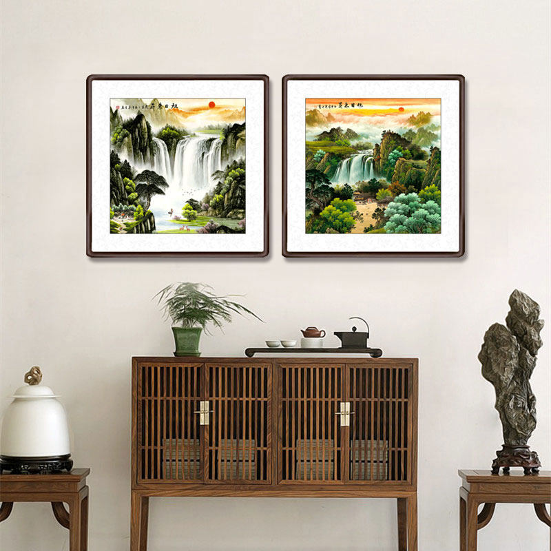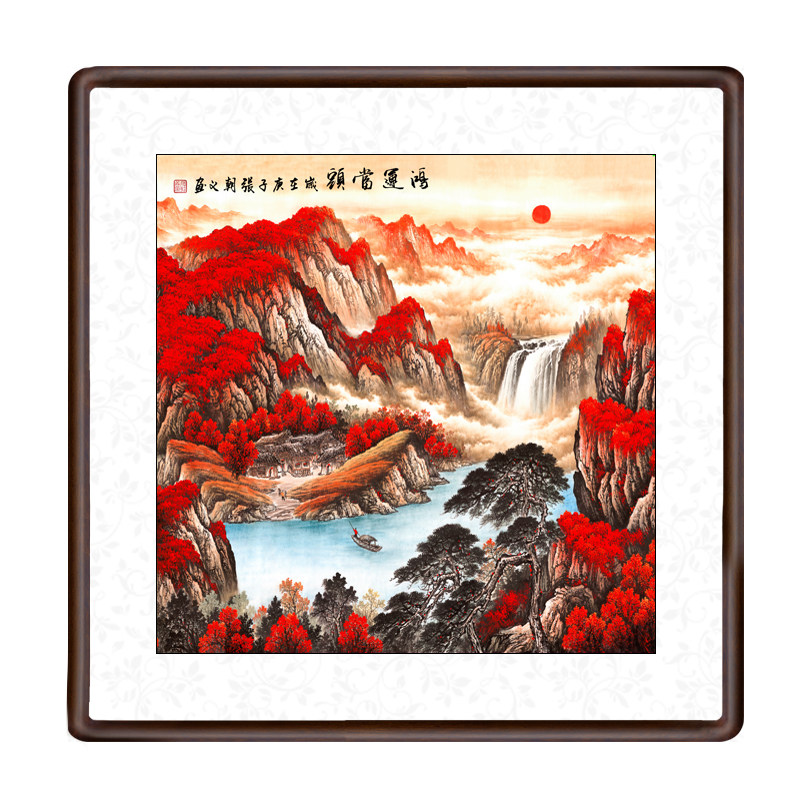 Hongyun Dangtou Chinese landscape painting Rising Sun East Rising There are mountains without water backing the mountain Figure Chinese-style household entrance decorative calligraphy painting