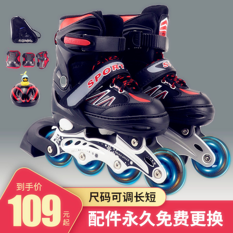 Black and blue roller skates single flash suit helmet protective gear black and red skates single flash suit helmet protective gear pink dolphin luxury single flash suit (helmet protector gift) black and blue skates