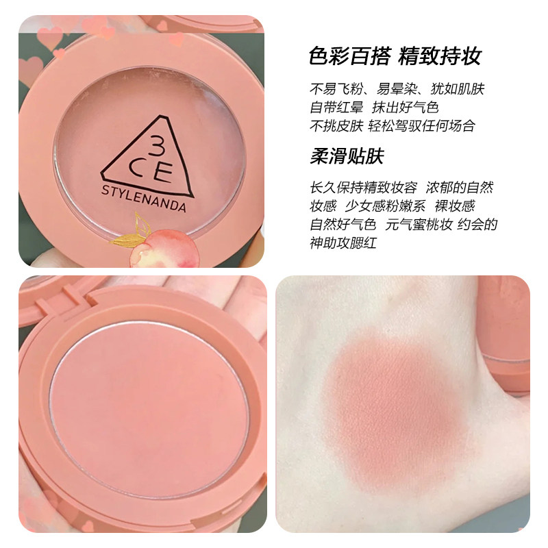 (Official) 3CE monochrome blush peach orange nude powder multi-use high-gloss blush for contouring