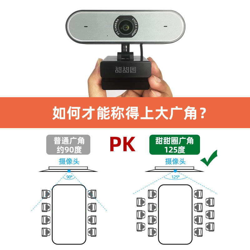 Donut video conferencing camera HD computer desktop live broadcast wide angle photography head Tencent conference DingTalk video usb network teaching smart TV with 1080P