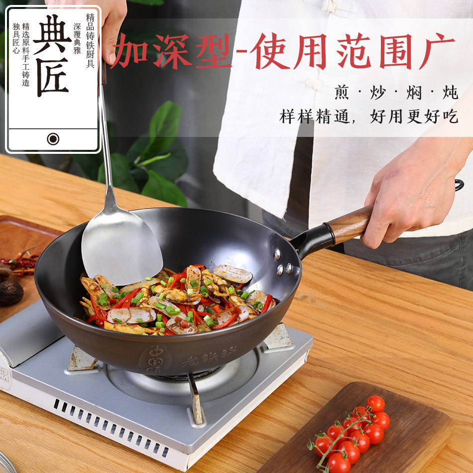 Cobbler cast iron Old iron boiler Home flat bottom No coating without dipping pan Oven Gas Oven Frying Pan 30cm