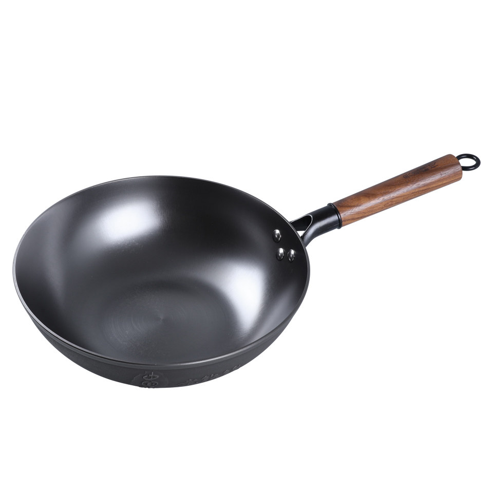 Old iron pan 30cm flat bottom glass lid