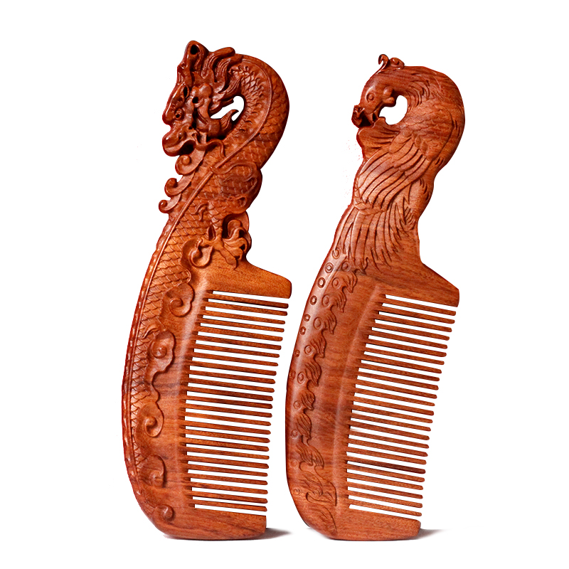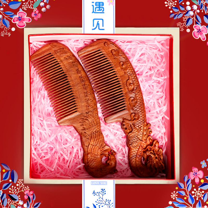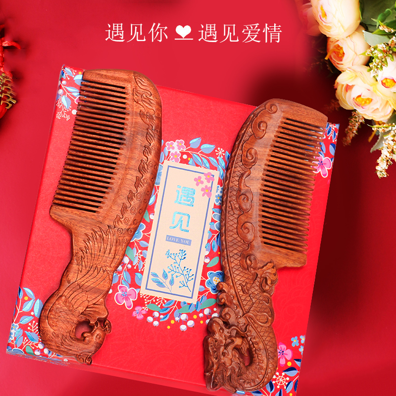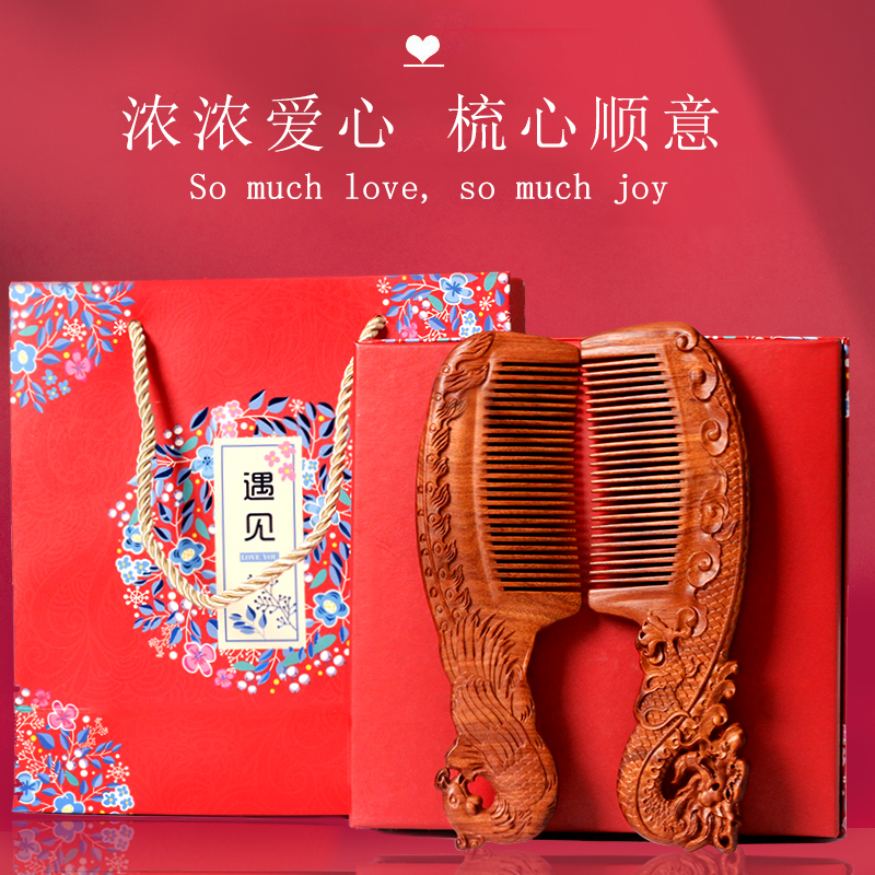Sandalwood wedding comb mirror set comb wood comb a pair of wedding red gift box gift bride dowry lettering