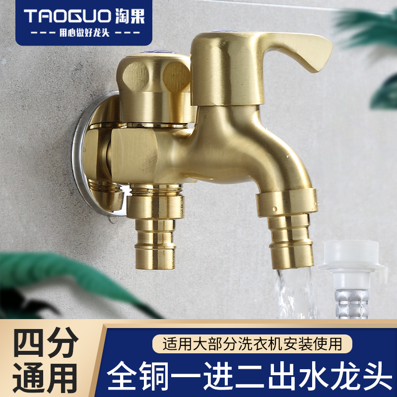 Full copper-in-two-out multifunctional double-use washing machine tap Home three-way mop pool water faucet switch tap