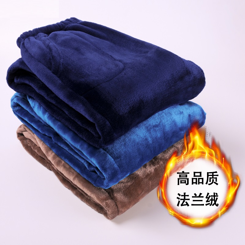 Coral suede flannel sleeping pants men's long version of autumn and winter closets breathable lengthened bunches suede pants gush warm and loose