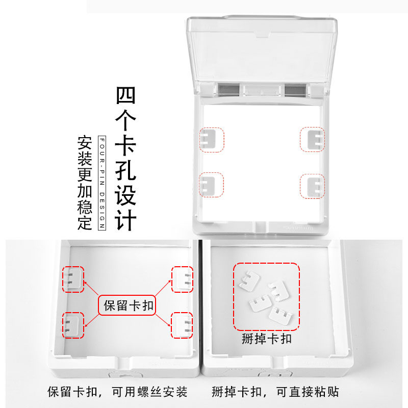 Min Fit Ultra Slim Waterproof Case 86 Type Universal Bathroom Bath Bully Switch Waterproof Cover Adhesive Outdoor Clear Wire Box Splash Box