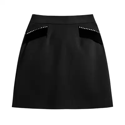LILY winter new women's velvet stitching hot Diamond a short skirt skirt