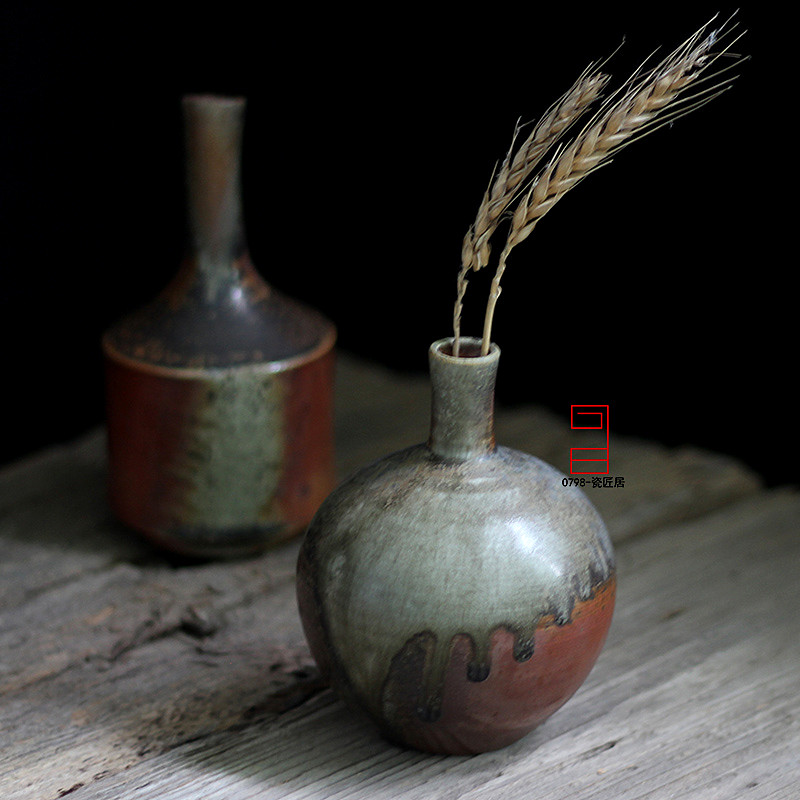 Retro ceramic pine wood fired ceramic handmade vase flower inserts home living room tea table ornaments flower utensils naturally fall ash