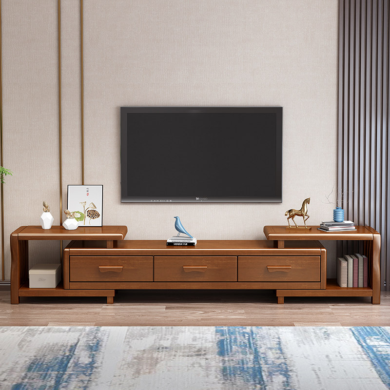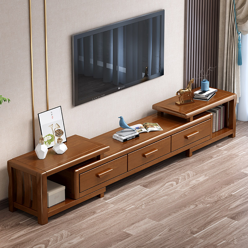 Modern Chinese-style solid wood TV cabinet telescopic living room coffee table combination low cabinet simple small apartment solid wood living room floor cabinet