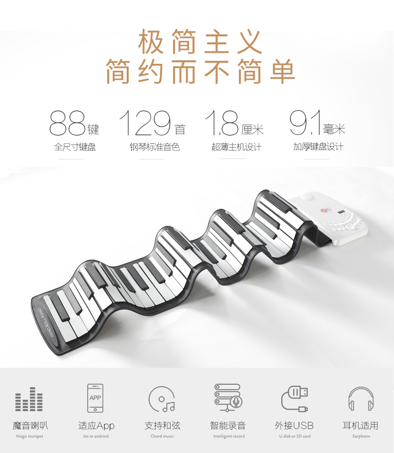 Early Chen hand roll electronic piano 88 keys portable professional adult children soft folding Junior teacher teaching