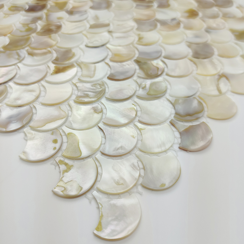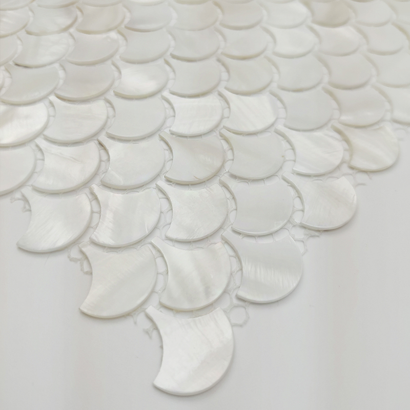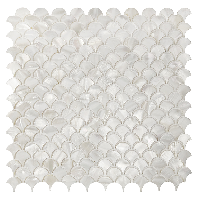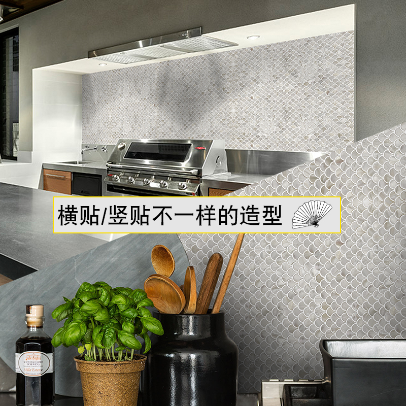 Natural shell mosaic self-adhesive tile TV background wall fan-shaped fish scale bathroom tile kitchen bathroom living room